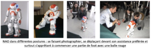 NAO a bien sûr un programme de base pour modéliser ses mouvements, mais il a surtout plusieurs programmes pour conduire son comportement qui dépend fortement de l’environnement et du contexte. Nous donnerons à cet effet deux cas d’utilisation de NAO. Sur un premier film, un enfant autiste reste muet et ne répond pas aux sollicitations de son thérapeute. Ce dernier fait alors appel à NAO et aussitôt l’autiste reproduit fidèlement les mouvements de bras suggérés par NAO. Une arme ne tarde pas à couler de l’œil de la maman assise derrière. Puis NAO, s’improvisant en coach sportif, fait se parler et jouer ensemble quatre autistes, ce que le thérapeute dont il devient l’assistant médical n’avait jamais réussi. Ennemi, ou assistant ami ? Un autre exemple est ce robot NAO acheté par la SNCF pour renseigner les passants autour des gares ; il ne fournit en réalité que des éléments que ne peuvent fournir les agents attitrés par suite d’accords passés avec les syndicats. Ennemi, ou assistant, selon les syndicats ?